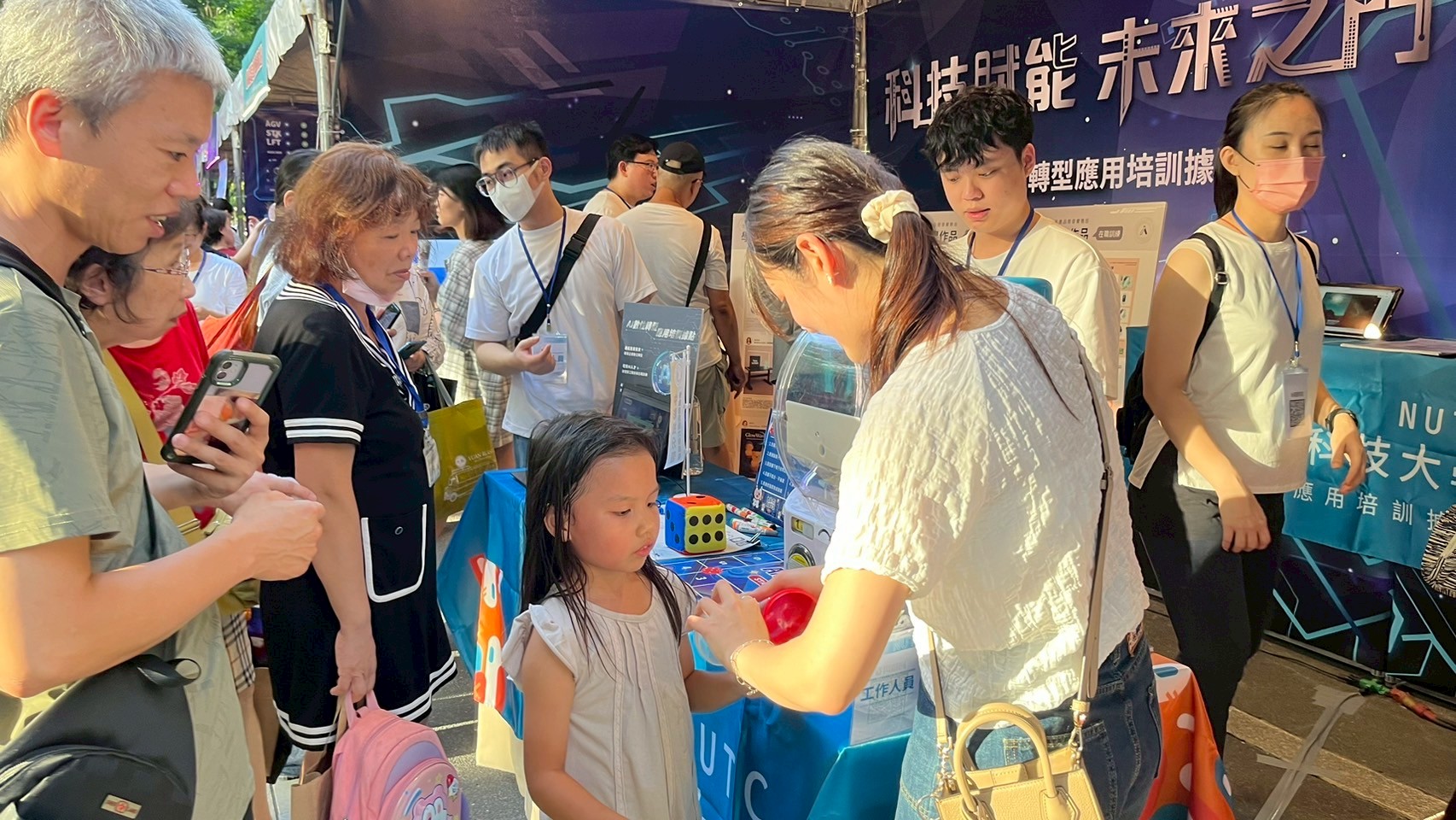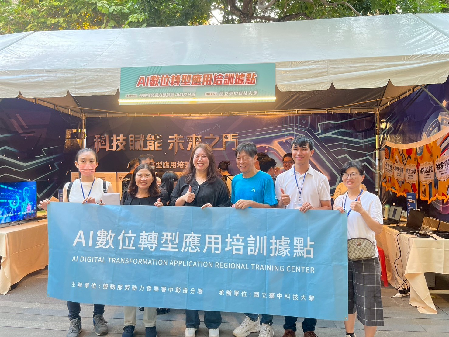 展覽區域展示包含「AI數位轉型應用培訓據點成果」、「AI互動體驗」。參觀者可以看到據點計畫的服務項目及執行成果(訓練班次結訓學員作品集、短影音、學員成品),並在AI互動體驗區體驗Chatgpt即時生成Q版公仔及「起飛吧!AI探索家」實體/線上互動益智遊戲,與民眾體驗AI帶來的高科技!讓每次體驗都是不一樣的新花樣,走進AI科技新未來~